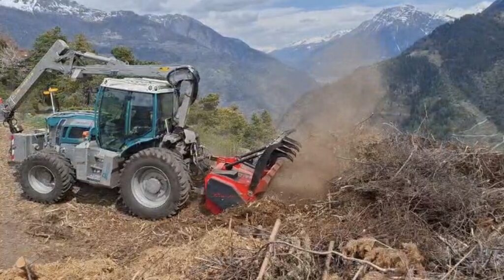 Forstmulcher zum Schreddern von Gehölz, Restholz und Baumstöcken z.B. auf Deponien; oder zum oberflächlichen Roden/ freischneiden von Flächen. Das Mulchgut wird sehr fein zerkleinert was die natürliche Verrottung extrem Beschleunigt.